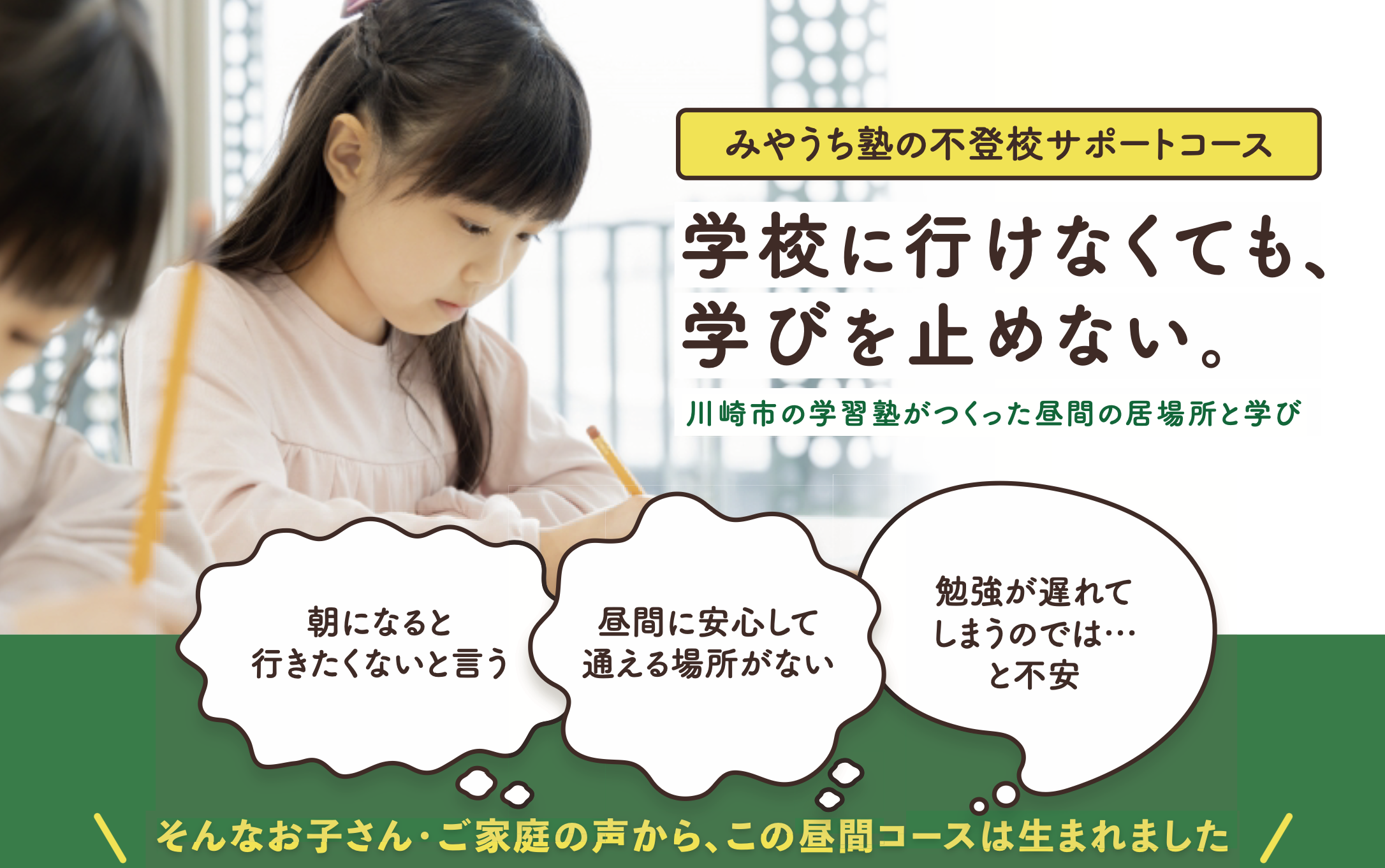 「朝になると行きたくないと言う」「勉強が遅れてしまうのでは…」「昼間に安心して通える場所がない」